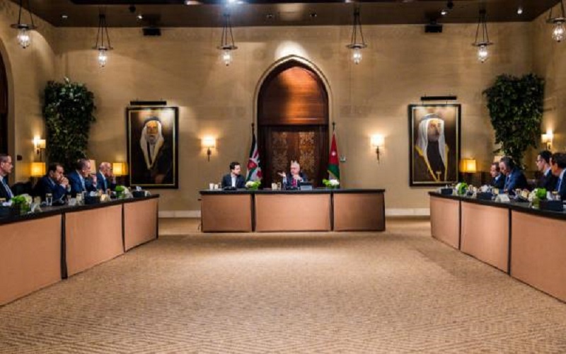 وشدد جلالة الملك على أنه من الضروري إدامة عمل عجلة الاقتصاد الوطني، داعيا إلى إيجاد آلية للتحوط حماية للاقتصاد نتيجة للظروف الراهنة المحيطة.