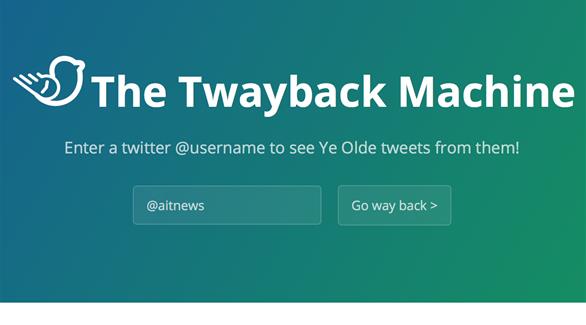 يمكن لمستخدمي شبكة التدوين المصغّر تويتر الاستفادة من خدمة The Twayback Machine التي تُتيح لهم إمكانية الوصول إلى مجموعة تغريدات قديمة قام أي حساب على تويتر بنشرها، بحيث يتمكن المستخدم من الوصول إلى هدفه من ذلك بسهولة.