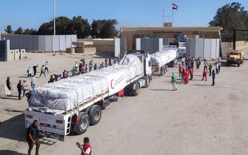 وقالت جمعية الهلال الأحمر المصري، إنها سلمت نحو 1814 شاحنة إلى قطاع غزة حتى السبت الماضي مقدمة من 11 منظمة و34 دولة، بالإضافة إلى 195 طائرة، فيما بلغت الإمدادات الطبية نحو 357 شاحنة، علاوة على 1143 شاحنة مواد غذائية و314 شاحنة مواد إغاثة.