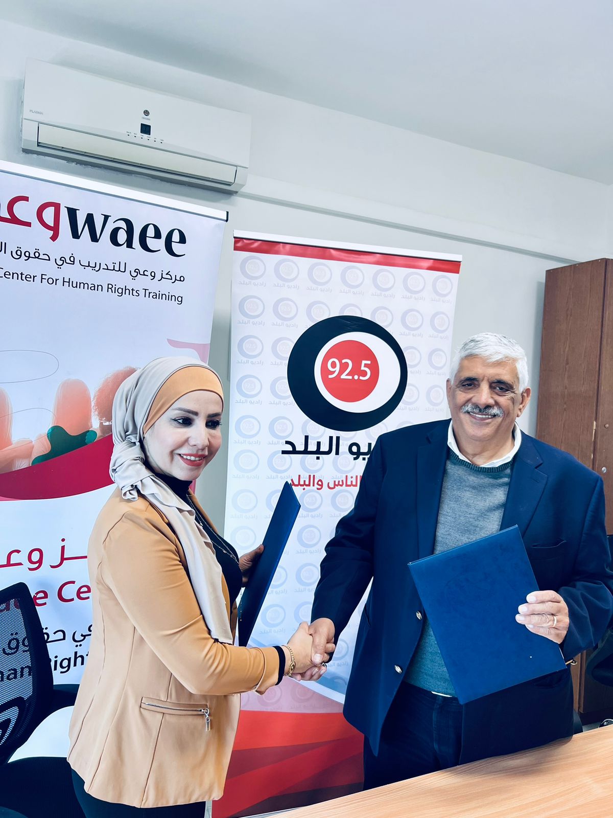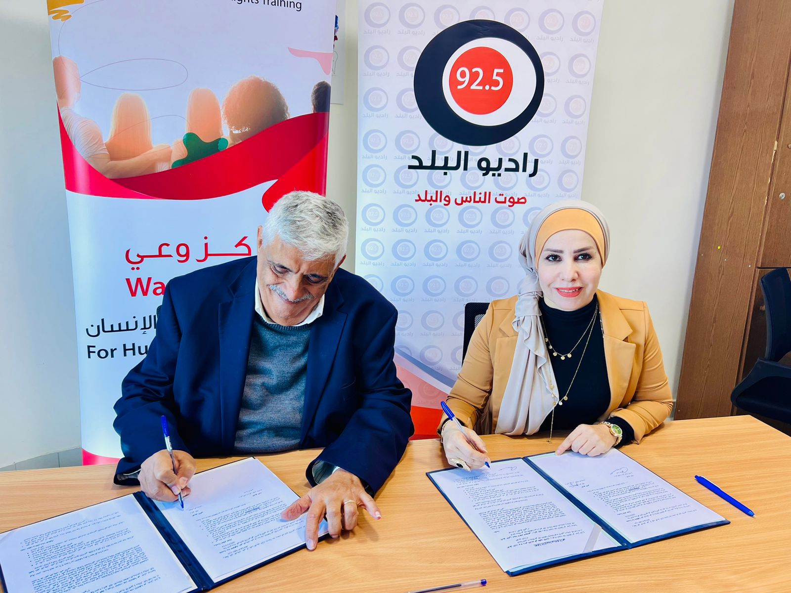 ووقع السيد داوود كتاب مدير عام شبكة الاعلام المجتمعي -راديو البلد الاتفاقيه مع الرئيس التنفيذي لمركز وعي للتدريب في حقوق الإنسان .لدورة برامجية تمتد ل١٣ اسبوعاً.