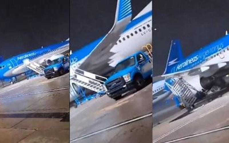 نيسان ـ ضربت رياح قوية مطار ايروبارك خورخي نيوبيري في بوينس آيرس يوم أمس الأحد حيث اجتاحت عاصفة شديدة المنطقة. وتحركت طائرة الخطوط الجوية الأرجنتينية بوينغ 737-700 عبر المدرج باتجاه السلم الذي يستخدمه الركاب للصعود إلى الطائرة قبل أن تصطدم به، وتم نقل الدرج بسرعة باتجاه المركبات التي يستخدمها عمال المدرج، وفقا لصحيفة ديلي ميل.