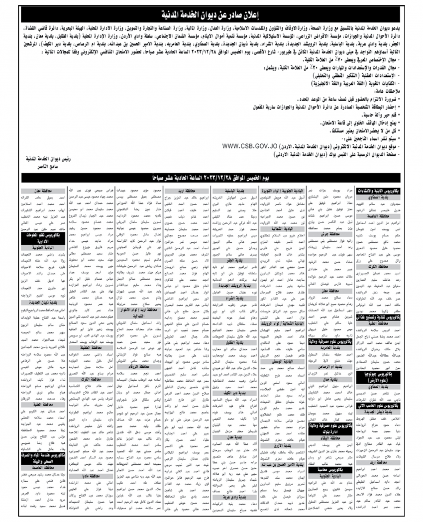 وبحسب الإعلان المنشور عبر الصحف اليومية، فإن الجهات تشمل وزارة الصحة، وزارة الأوقاف والمقدسات الإسلامية، وزارة العدل، وزارة المالية، وزارة الصناعة والتجارة والتموين، وزارة الإدارة المحلية، الهيئة البحرية، ودائرة قاضي القضاة، دائرة الأحوال المدنية والجوازات، مؤسسة الإقراض الزراعي، المؤسسة الاستهلاكية المدنية، مؤسسة تنمية أموال الأيتام، مؤسسة الضمان الاجتماعي، سلطة وادي الأردن، بالإضافة إلى بلديات.