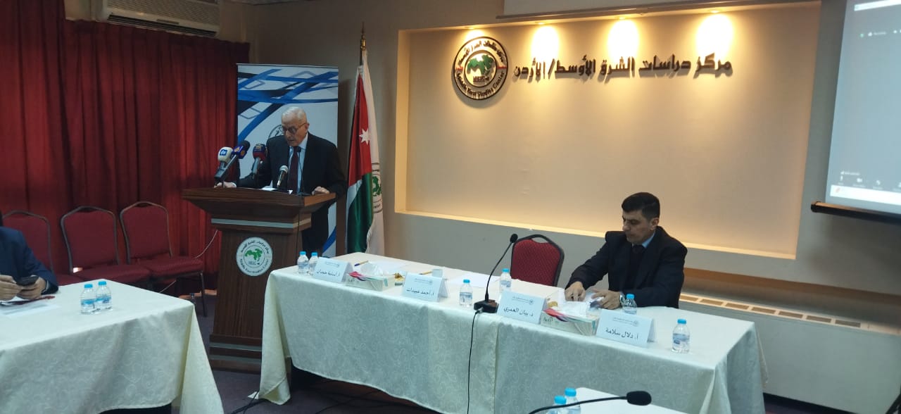 وخلال الجلسة الأولى للندوة التي أدارها رئيس الوزراء الأسبق أحمد عبيدات بعنوان "الأبعاد والتحولات الميدانية والسياسية والقانونية للمعركة وانعكاساتها على طرفي الصراع" أشار اللواء المتقاعد الدكتور محمود اردريسات إلى ما شكلته معركة طوفان الأقصى من اختراق استراتيجي على كل المستويات الميدانية والعسكرية والمخابراتية، مما شكل هزة للكيان الصهيوني وضربة وجودية لها، الأمر الذي دفع الدول الاستعمارية للهرولة لإنقاذ الكيان الصهيوني الذي يحمي مصالحهم في المنطقة، كما أكد إرديسات أن هذه المعركة أعادت القضية الفلسطينية الى الواجهة بعد محاولات طيها وأنها ضربت مسار التطبيع الإسرائيلي مع أنظمة عربية وكشفت الدعم الأمريكي غير المحدود للاحتلال.