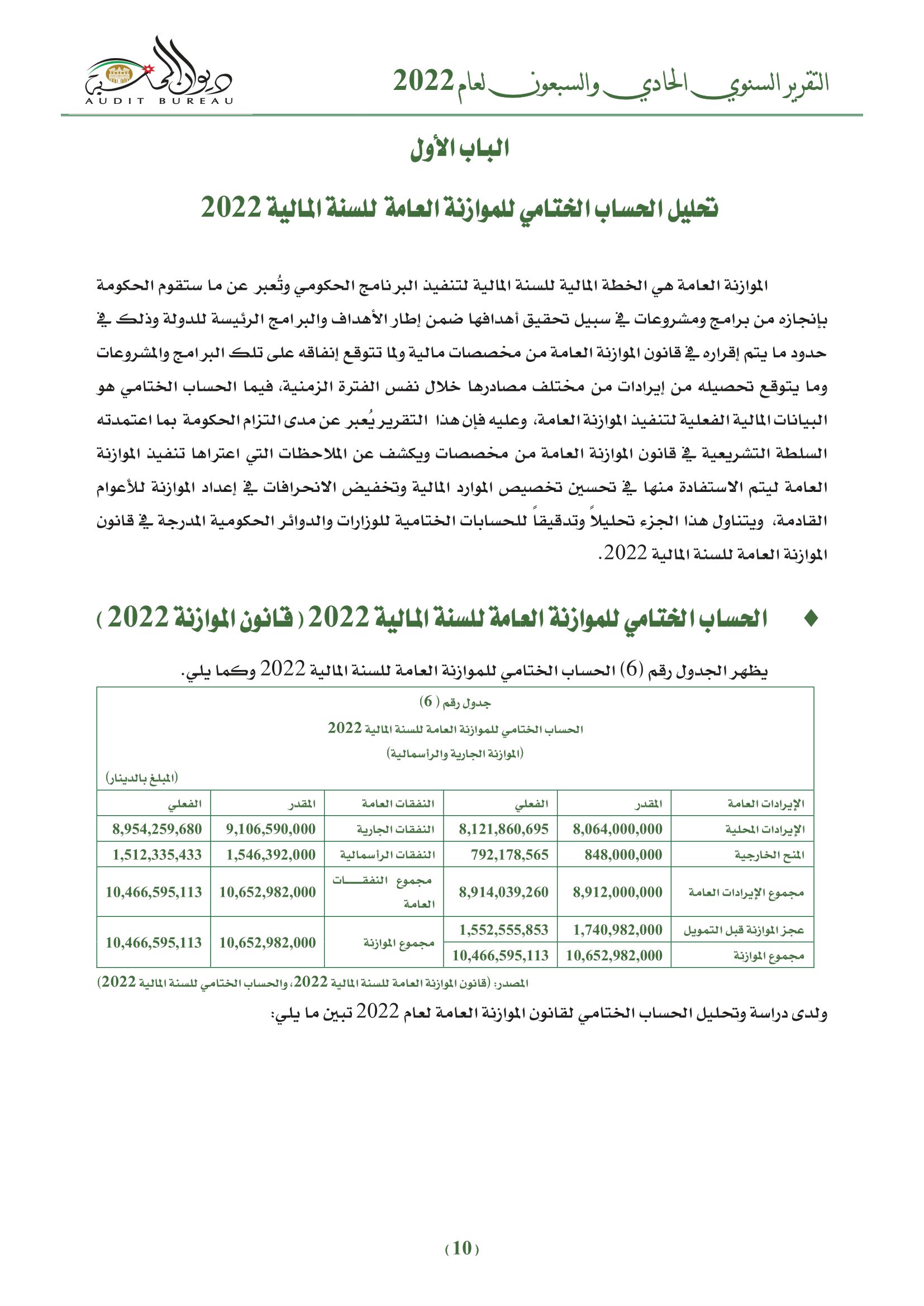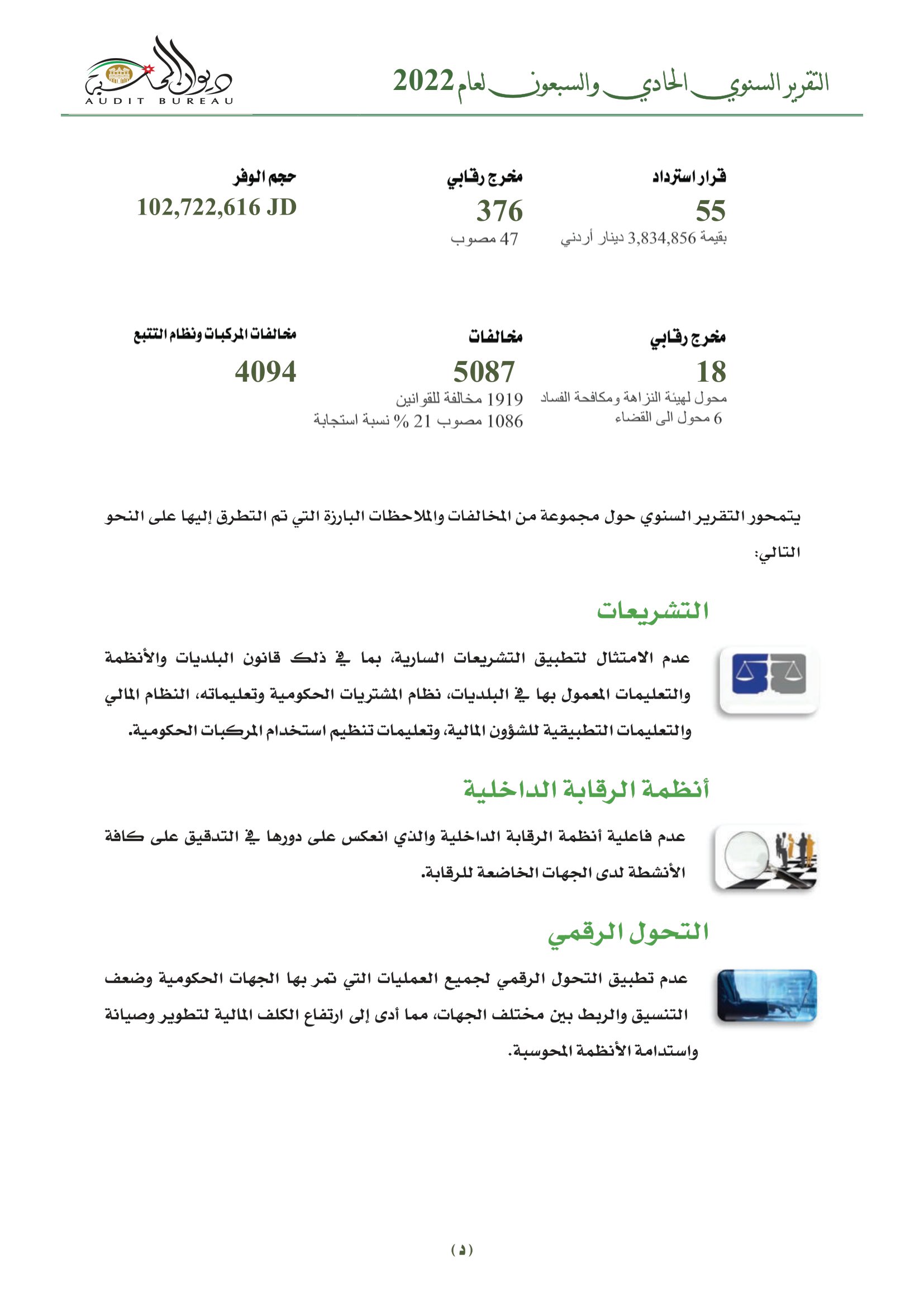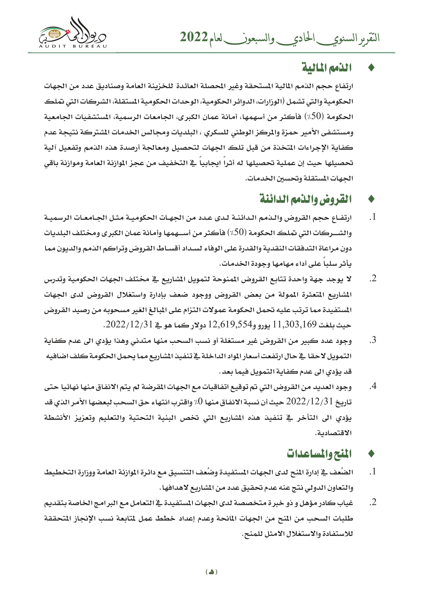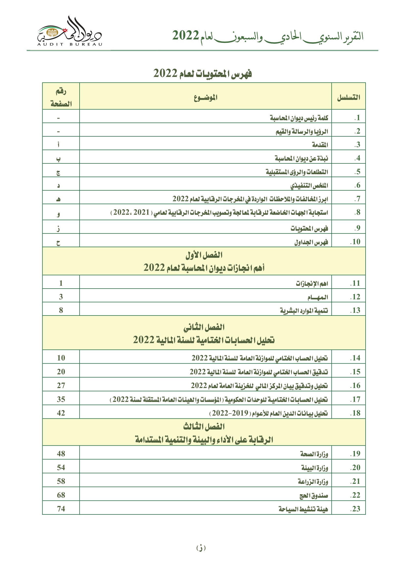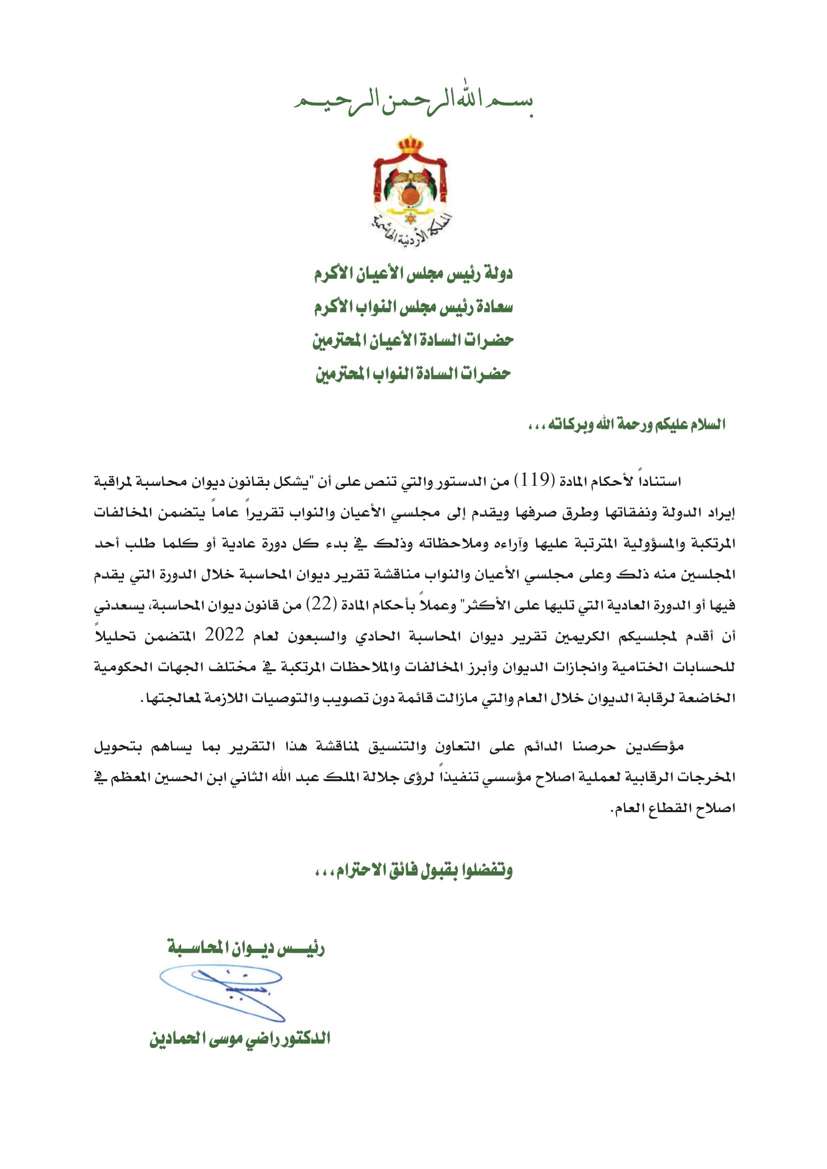 نيسان ـ أصدر ديوان المحاسبة اليوم الثلاثاء، تقريره السنوي الـ 71 لعام 2022.