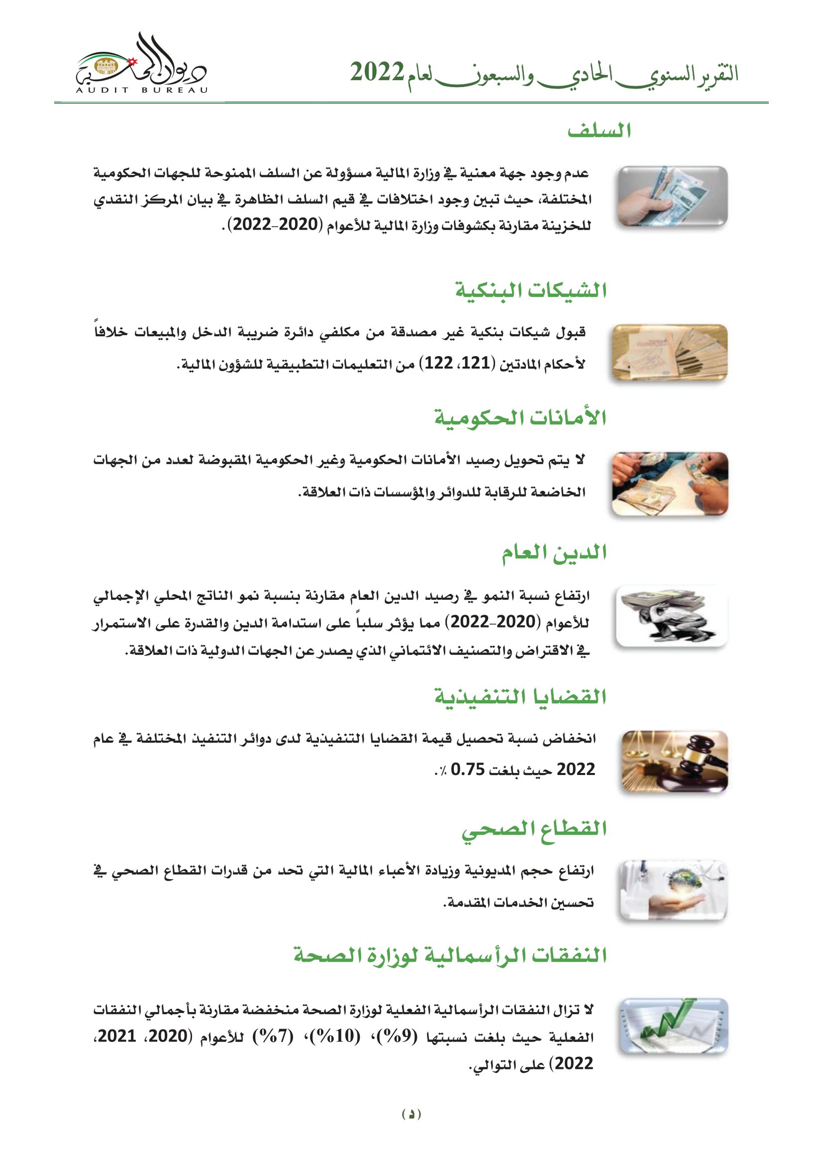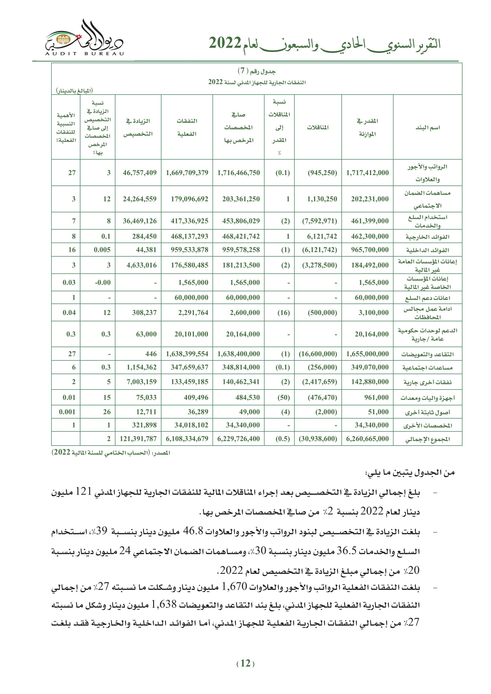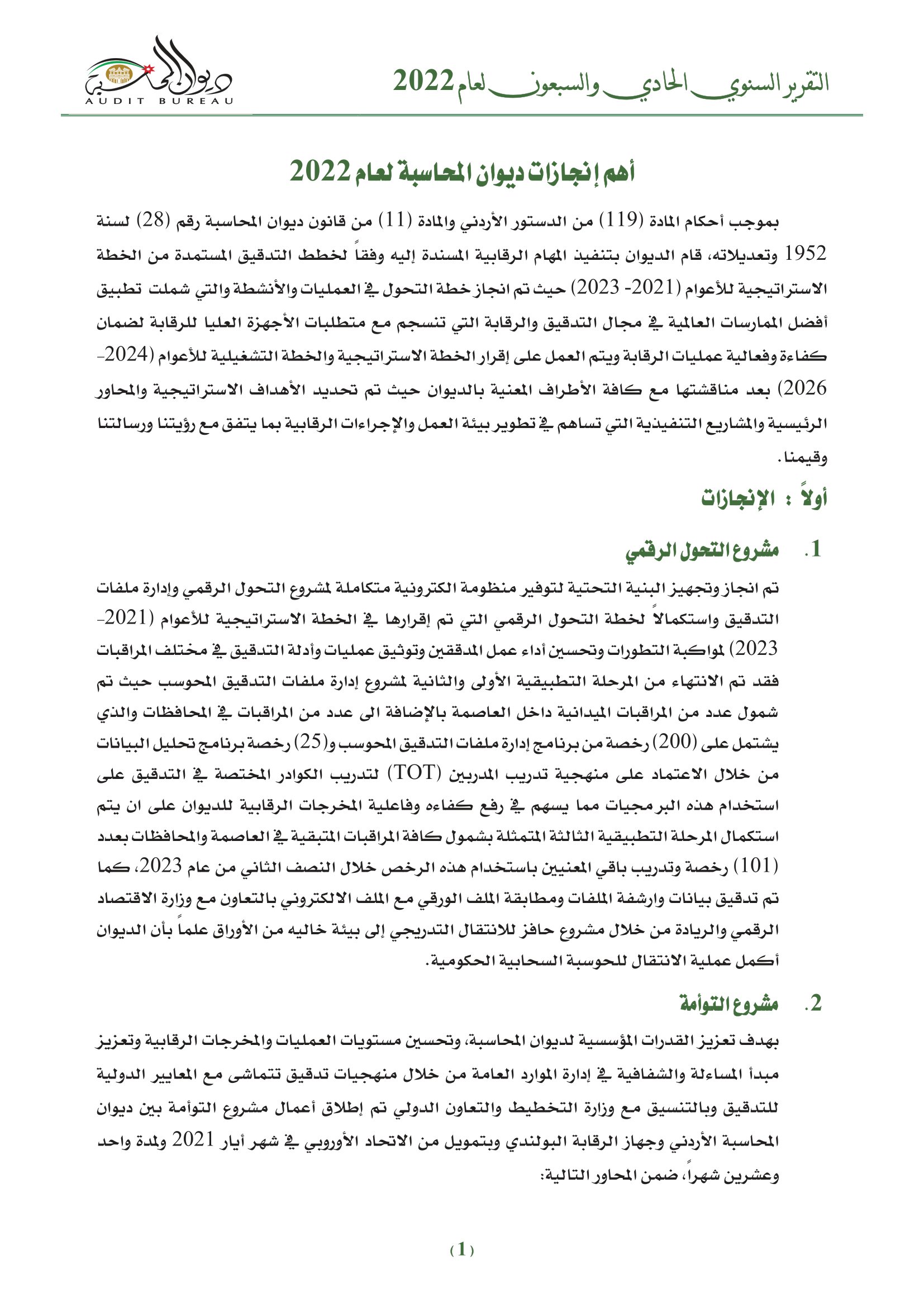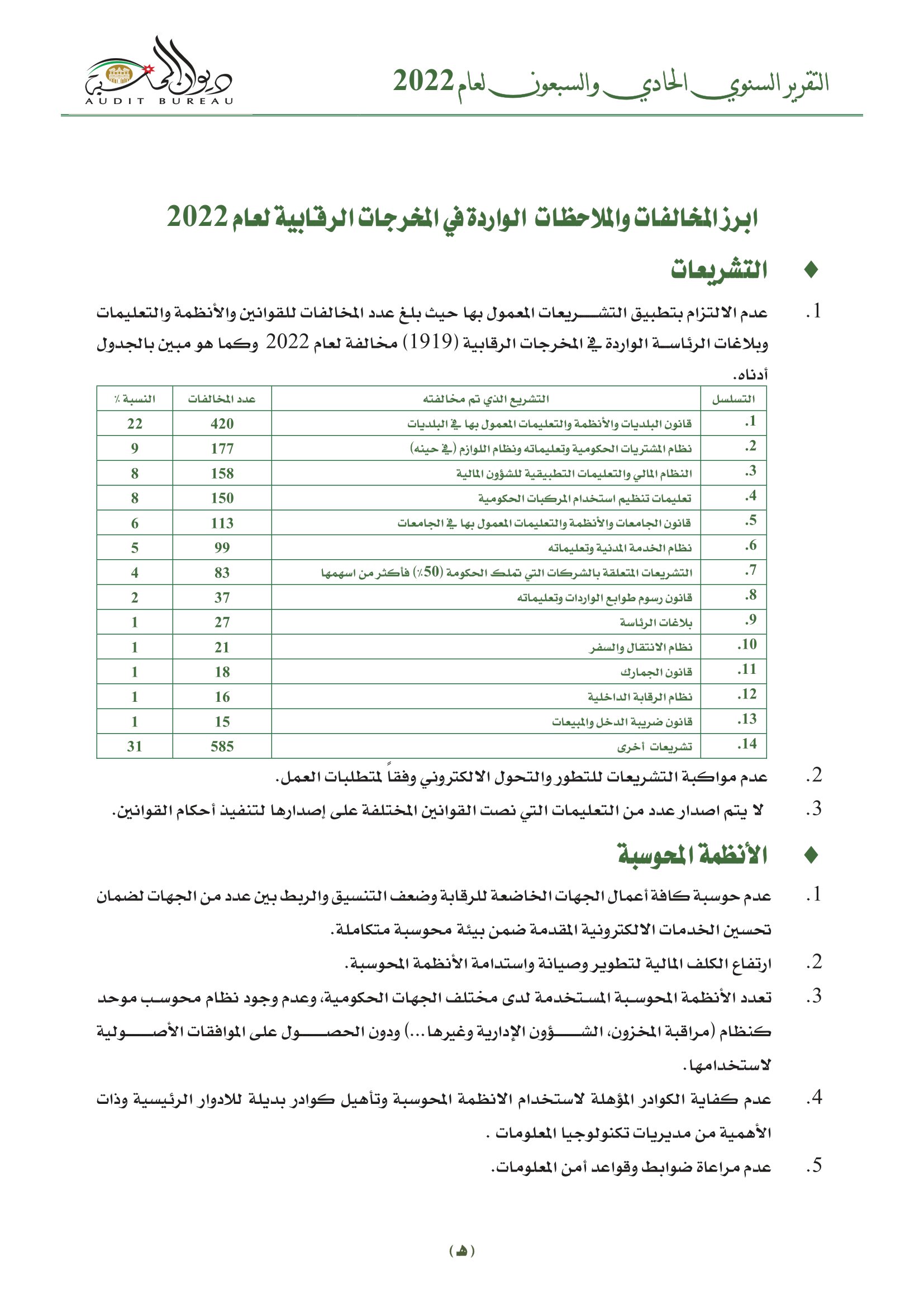 نيسان ـ أصدر ديوان المحاسبة اليوم الثلاثاء، تقريره السنوي الـ 71 لعام 2022.