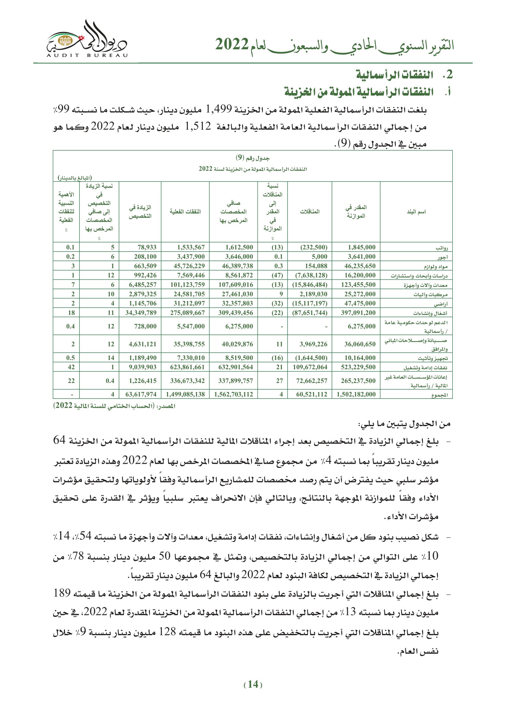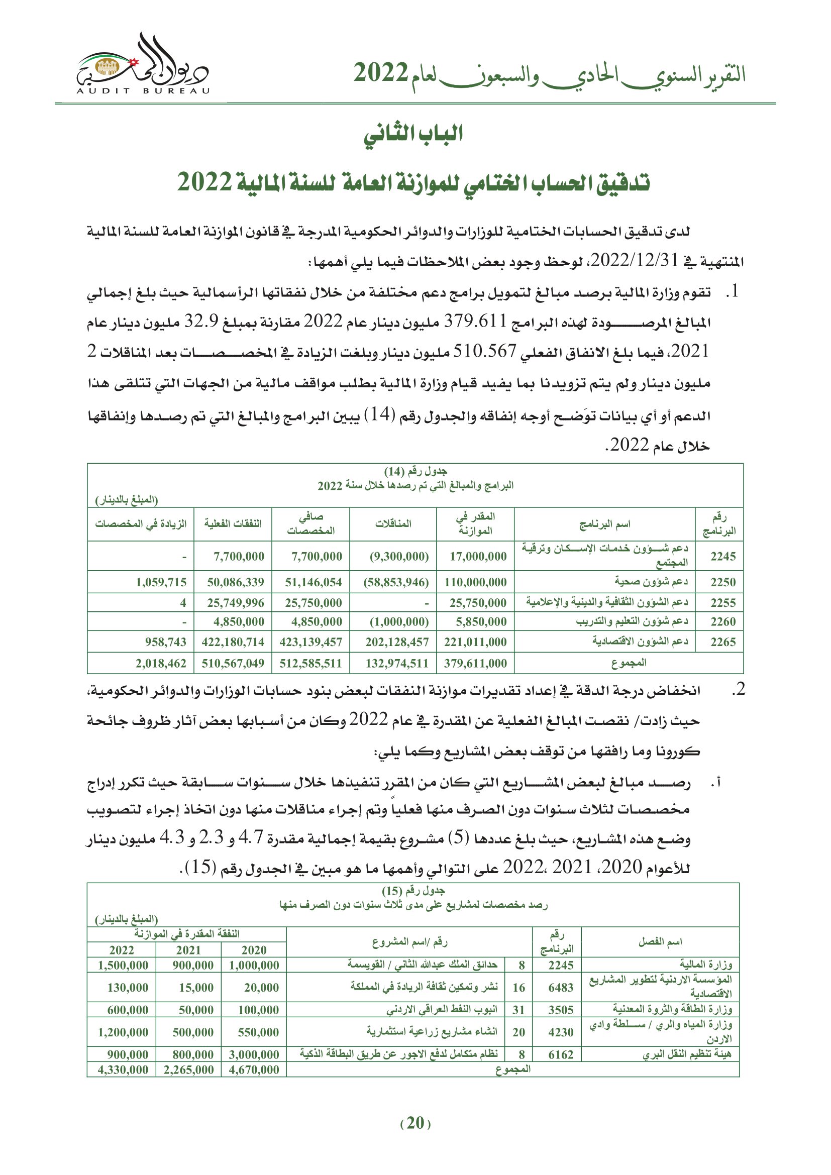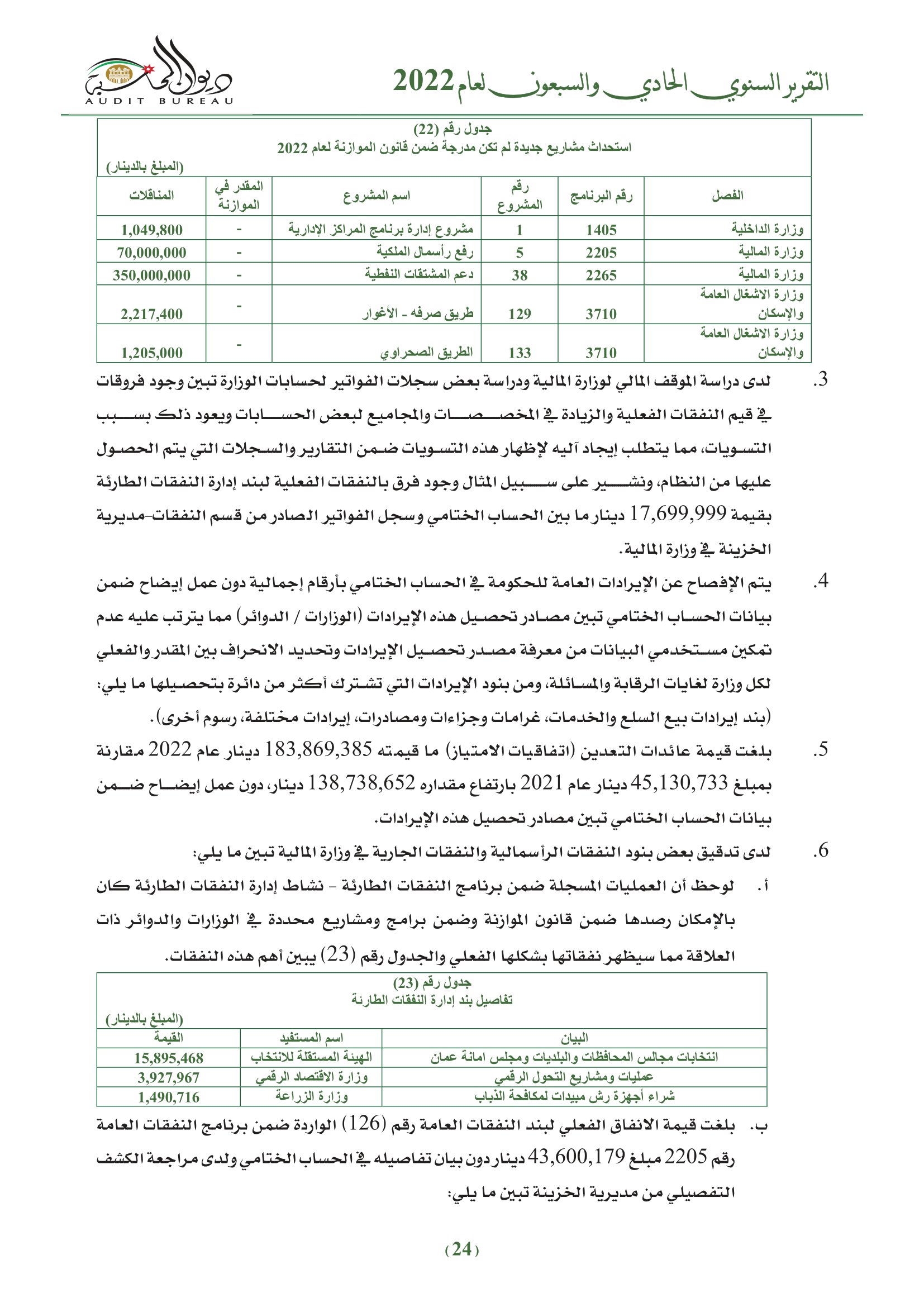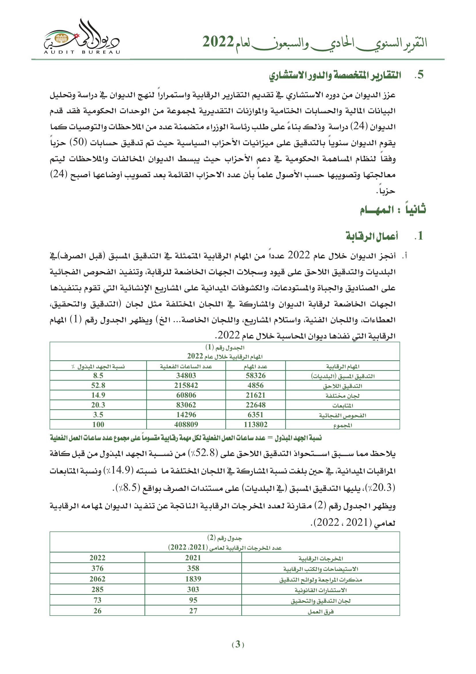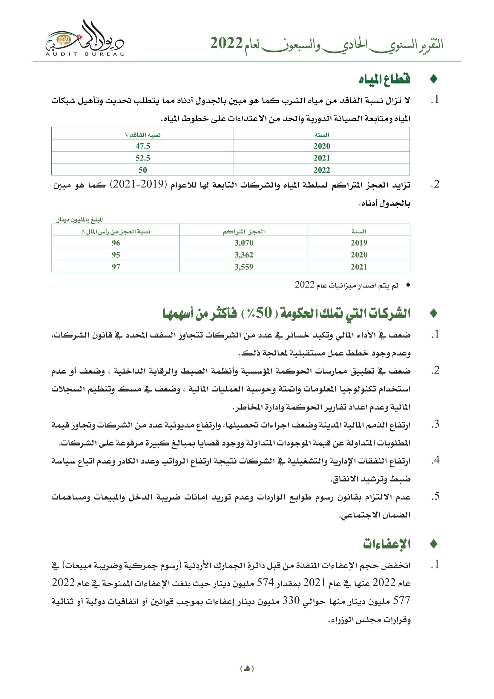 نيسان ـ أصدر ديوان المحاسبة اليوم الثلاثاء، تقريره السنوي الـ 71 لعام 2022.