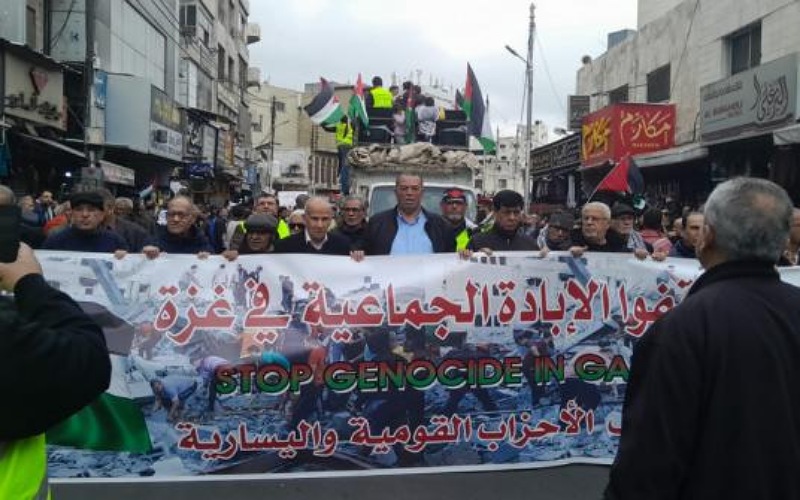 كما طالبوا مشاركين في مسيرة مسجد الملك عبد الله الأول في منطقة العبدلي بوقف العدوان الإسرائيلي على قطاع غزة معبرين أنها "محرقة على أهالي القطاع".