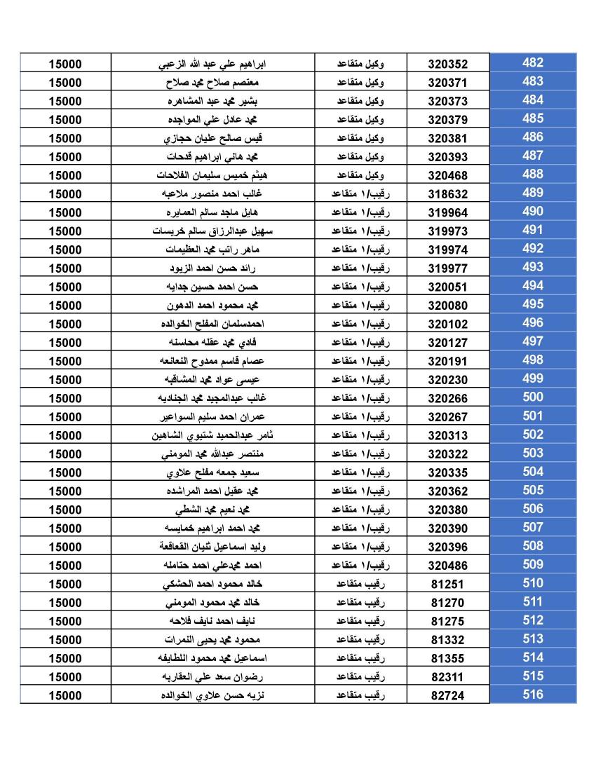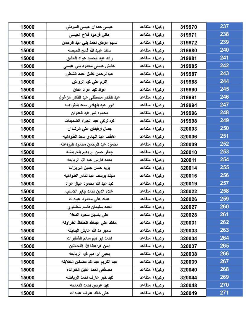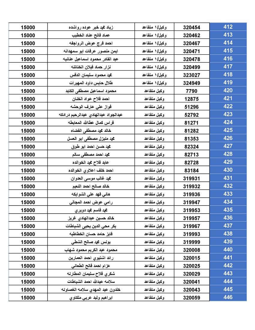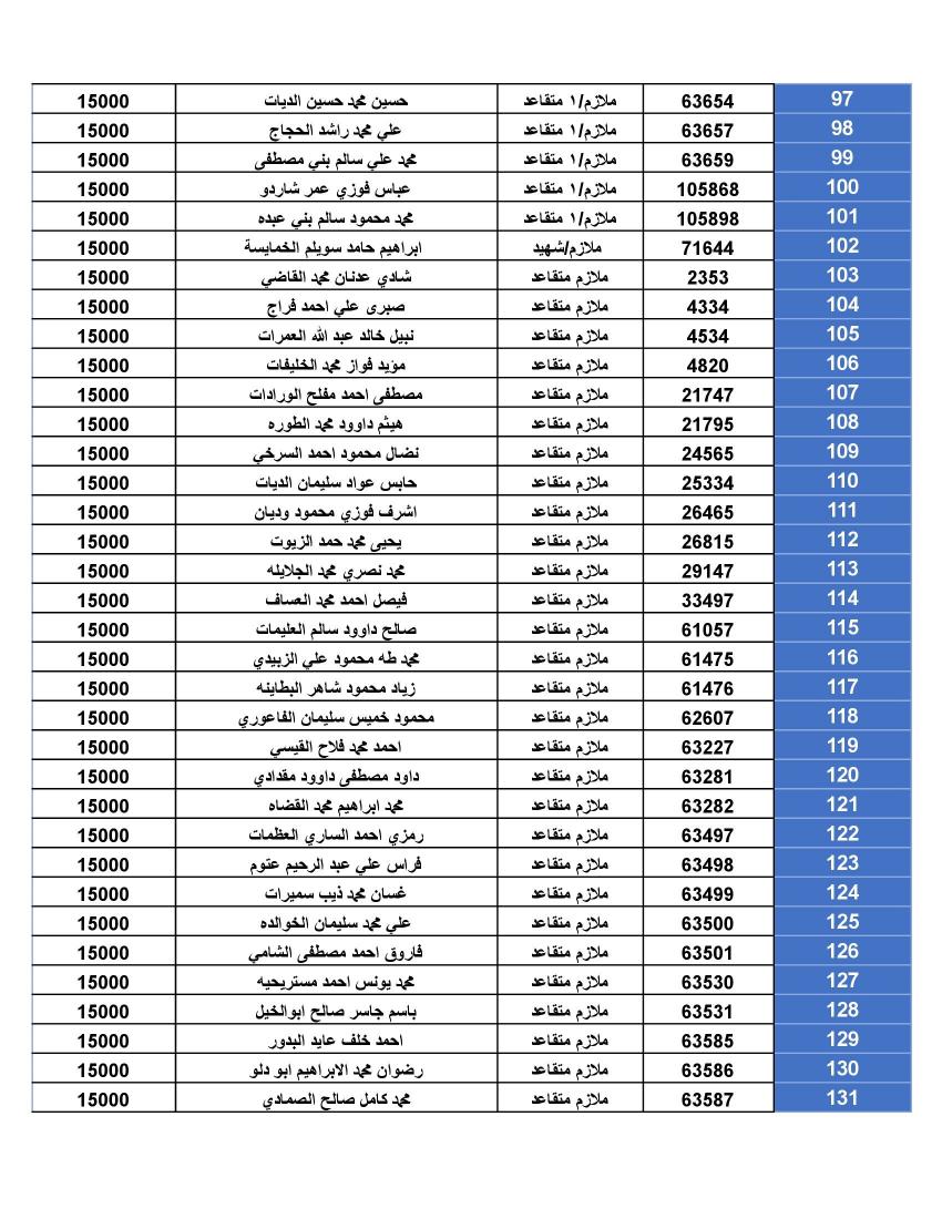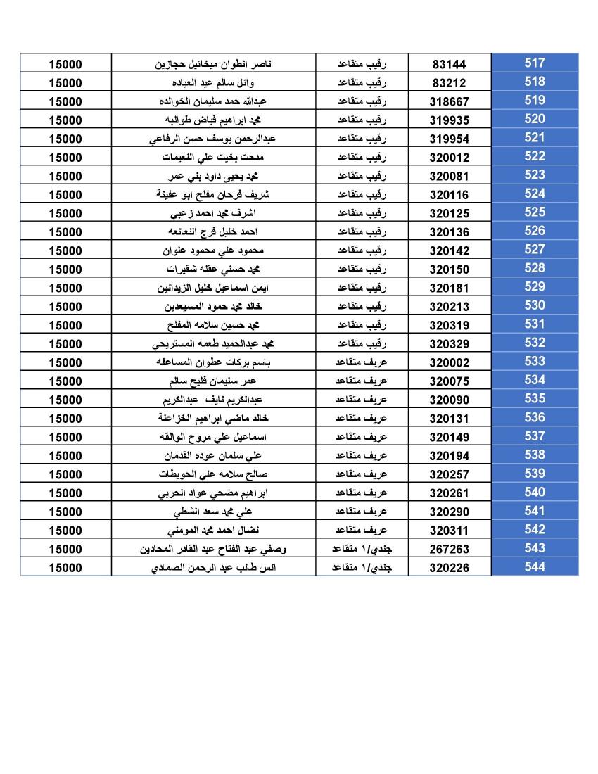 نيسان ـ أعلنت القيادة العامة للقوات المسلحة الأردنية – الجيش العربي/ مديرية مؤسسة الإسكان والأشغال العسكرية، أن الضباط وضباط الصف والأفراد المبينة أسماءهم أدناه قد استحقوا قرض الإسكان العسكري وعلى الضباط المستفيدين من صندوق إسكان الضباط مراجعة مديرية الإسكان والأشغال العسكرية خلال ساعات الدوام الرسمي اعتباراً من يوم الاثنين الموافق 1/01/2024 للحصول على القرض والضباط وضباط الصف والأفراد المستفيدين من صندوق الإسكان العسكري (الخاص بالإفراد).