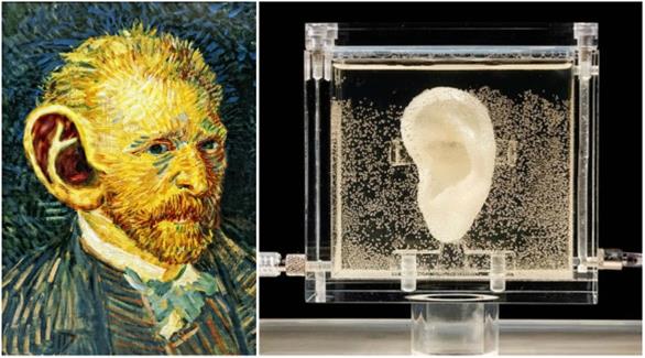 تعرض نسخة مطابقة لأذن الفنان الانطباعي الراحل، فنسنت فان جوخ المقطوعة، في متحف رونالد فيلدمان في منهاتن، بولاية نيويورك، بفضل جهود الفنان ديموت ستريب المتخصص بالأعمال الفنية باستخدام الحمض النووي، وبحسب صحيفة "إندبندنت" البريطانية، فإن "بوسع هذه الأذن أن تسمعك".