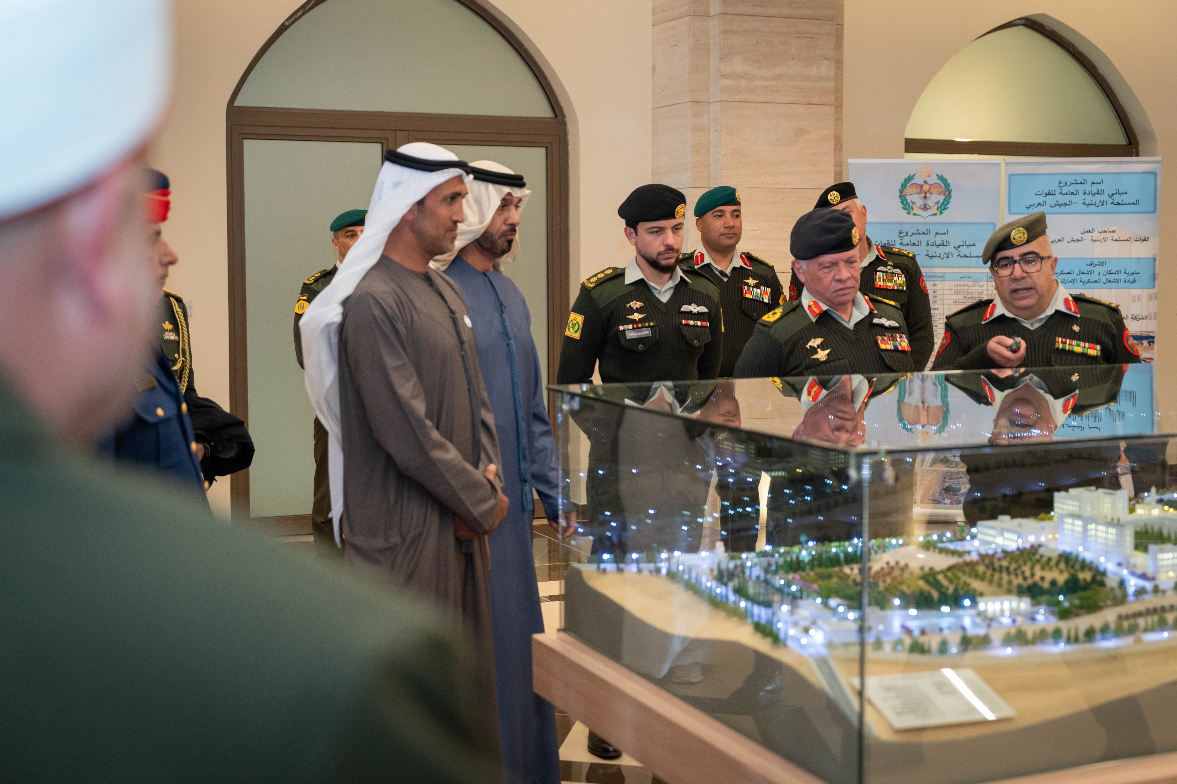 واستمع جلالته إلى إيجاز من مدير مؤسسة الإسكان والأشغال العسكرية حول المقر الذي يقع على مساحة أرض تبلغ 300 دونم، وأنشئ وفقا لأحدث الأسس والمعايير الهندسية.