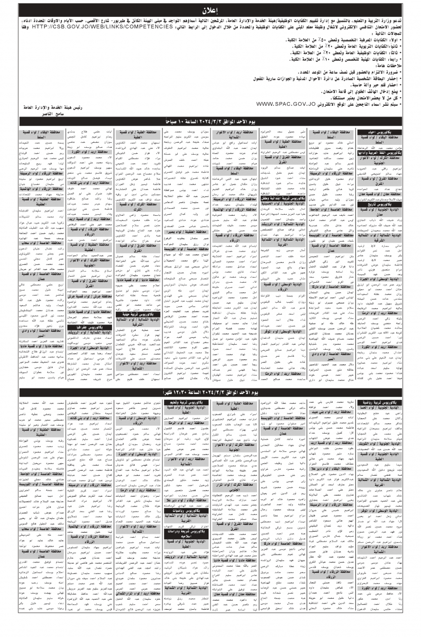 نيسان ـ دعت وزارة التربية والتعليم، بالتعاون مع إدارة تقييم الكفايات الوظيفية/ هيئة الخدمة والإدارة العامة، المئات من المرشحين للامتحان التنافسي، لإشغال وظيفة معلم.