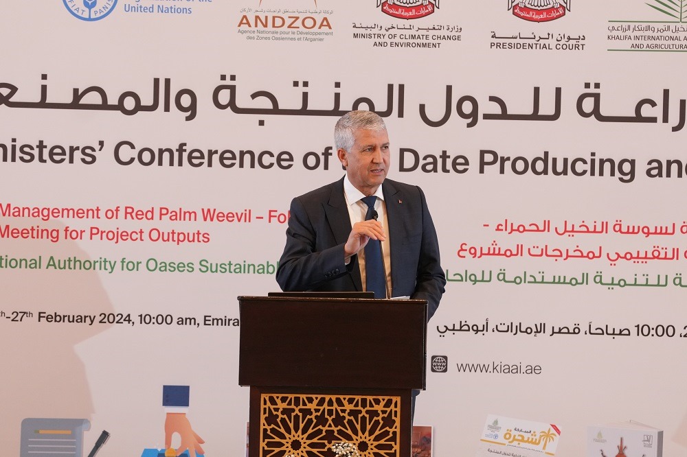 أعلن معالي الدكتور محمد الصديقي وزير الفلاحة والصيد البحري والتنمية الريفية والمياه والغابات بالمملكة المغربية، عن إنشاء الهيئة الدولية للتنمية المستدامة للواحات، بالتعاون مع جائزة خليفة الدولية لنخيل التمر والابتكار الزراعي ومنظمة الأغذية والزراعة للأمم المتحدة وبمشاركة وزارات الزراعة في الدول المنتجة للتمور.