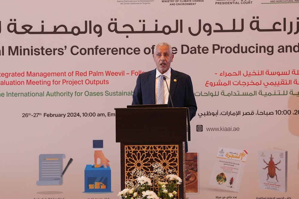 كما أعرب الدكتور عبد الوهاب زايد أمين عام جائزة خليفة الدولية لنخيل التمر والابتكار الزراعي عن تقديره لأصحاب المعالي وزراء الزراعة في الدول المنتجة للتمور على دعمهم وتأييدهم الكبير لمبادرة (الهيئة الدولية للتنمية المستدامة للواحات)، التي أطلقتها الأمانة العامة للجائزة بالتعاون مع وزارة التغير المناخي والبيئة بدولة الإمارات، ووزارة الفلاحة والصيد البحري والتنمية القروية والمياه والغابات في المملكة المغربية، فالمبادرة هي أحد أهم ثمار التعاون الإقليمي الذي بدأت به الأمانة العامة للجائزة منذ 3 سنوات مع وزارة الفلاحة بالمملكة المغربية ممثلة بالوكالة الوطنية لتنمية مناطق الواحات وشجر الأركان، حيث تم عرض المبادرة خلال فعاليات مؤتمر الأطراف للمناخ (COP26) بغلاسكو 2021، ومؤتمر الأطراف للمناخ (COP27) بشرم الشيخ 2023، ومؤتمر الأطراف للمناخ (COP28) بدبي 2023، واليوم نجتمع للإعلان عن مقترح إنشاء هيئة دولية مستقلة لدعم النُظم الواحاتية في الدول التي تضم واحات نخيل التمر تتعرض لتأثيرات التغير المناخي. بالشراكة والتعاون مع كافة وزارات الزراعة في الدول المنتجة للتمور إلى جانب عدد من المنظمات الإقليمية والدولية ذات العلاقة، بهدف دعم وتفعيل التنمية المستدامة بالنظم الواحية وإدراجها في قلب الاتفاقيات الإقليمية والدولية ذات الصلة. وذلك لتحقيق الأهداف التالية: