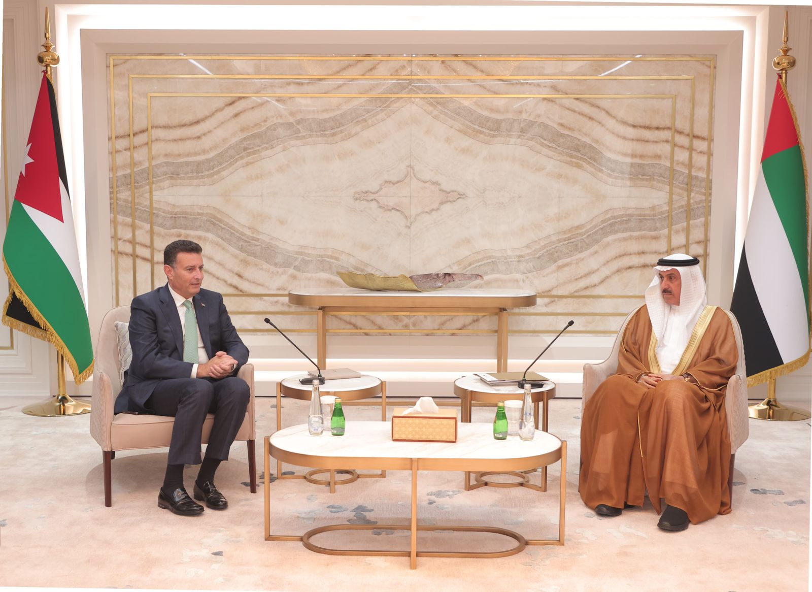 نيسان ـ اجرى رئيس مجلس النواب أحمد الصفدي اليوم الثلاثاء، مباحثات رسمية في مقر المجلس الوطني الاتحادي مع رئيس المجلس الوطني الاتحادي الإماراتي صقر غباش تناولت علاقات الاخوة التاريخية التي تجمع الاردن والامارات بقيادة جلالة الملك عبد الله الثاني وأخيه صاحب السمو الشيخ محمد بن زايد آل نهيان رئيس دولة الإمارات العربية المتحدة.