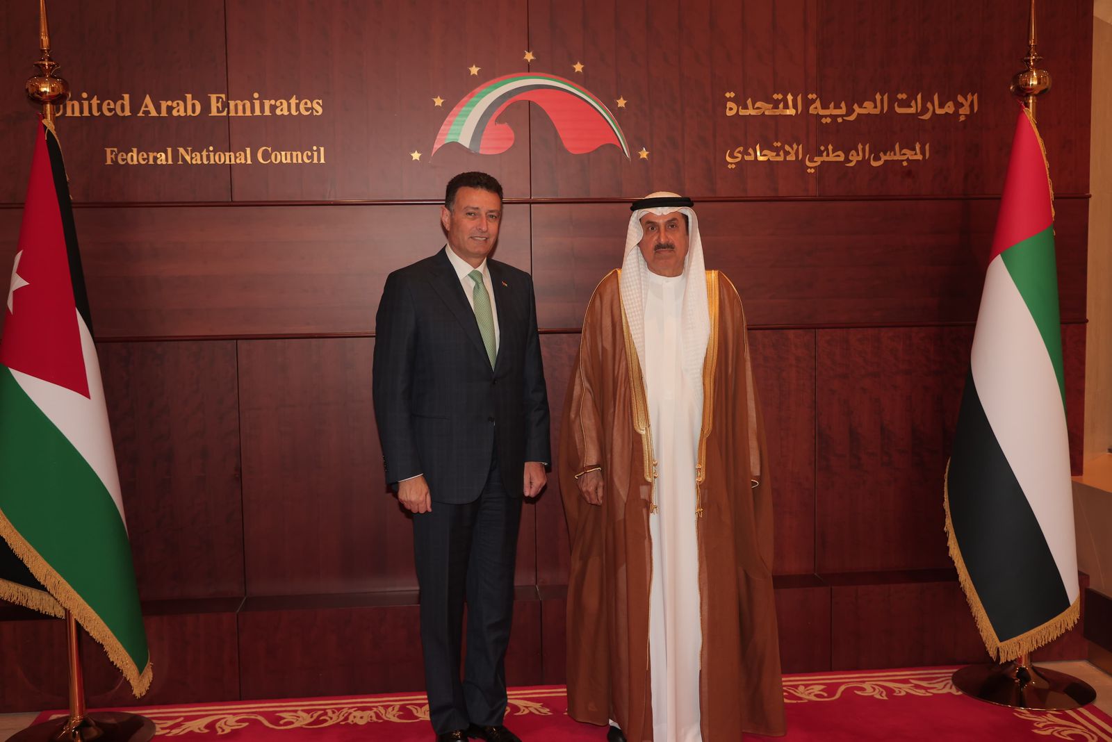 من جهته قال رئيس المجلس الوطني الاتحادي الإماراتي صقر غباش خلال اللقاء الذي حضره اعضاء المجلس الوطني الاتحادي الإماراتي،ان الأردن قدم الكثير للإمارات منذ بداية تأسيس الدولة الاماراتية حيث شارك الأردنيون بخبراتهم التعليمية والتقنية في بناء وتطوير الدولة بمختلف المجالات.