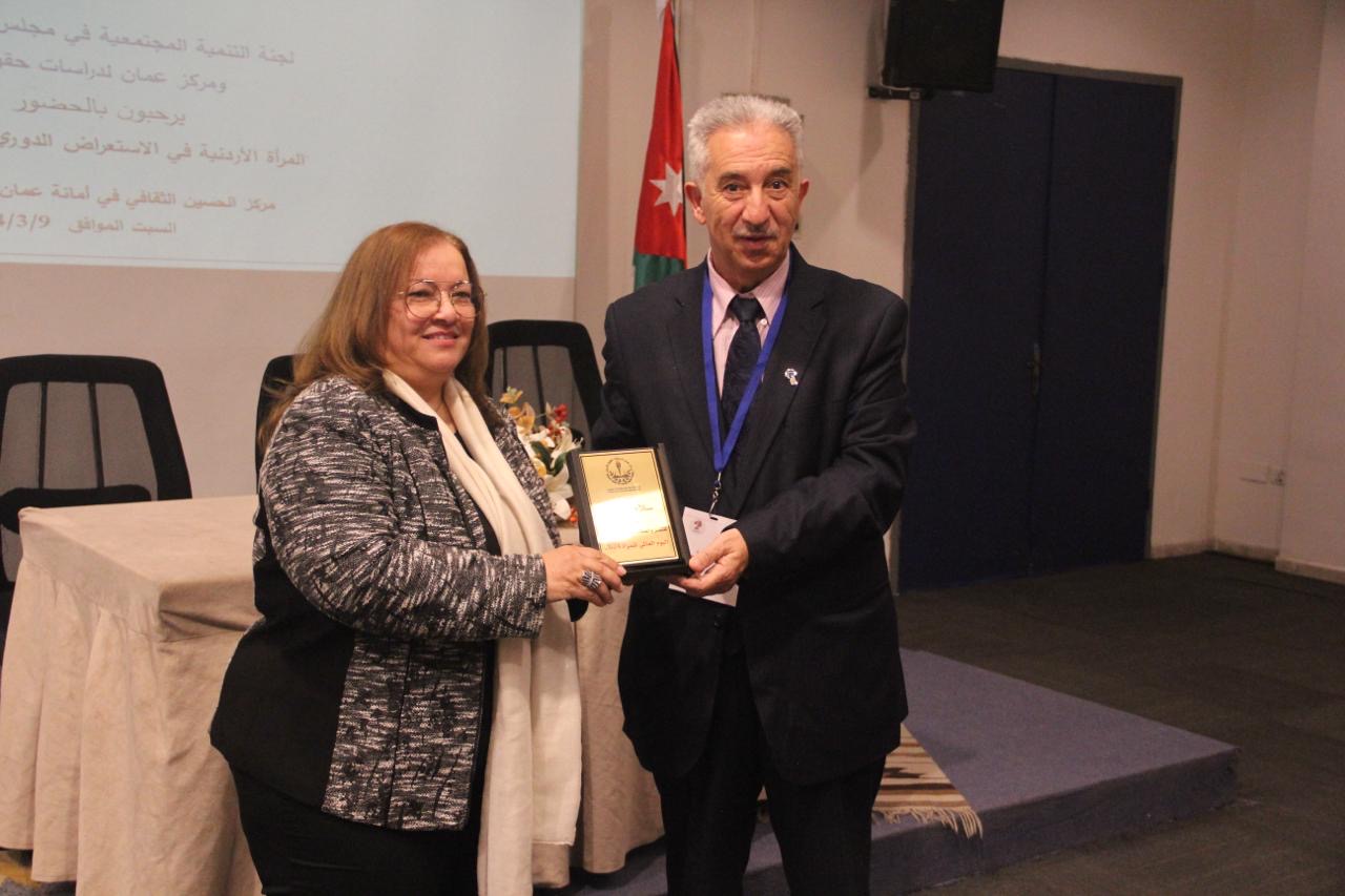وفي ختام الفعالية قام المركز بتكريم خمسة نساء أردنيات تميز بعطائهن في خدمة المجتمع ، وهن :