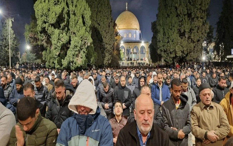 نيسان ـ أدى آلاف المواطنين صلاتي العشاء والتراويح في رحاب المسجد الأقصى المبارك، اليوم الخميس، رغم تضييقات الاحتلال الإسرائيلي.