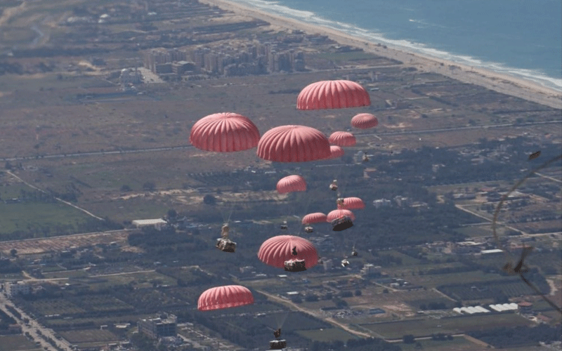 القوات المسلحة تنفذ 6 إنزالات جوية لمساعدات غذائية على غزة