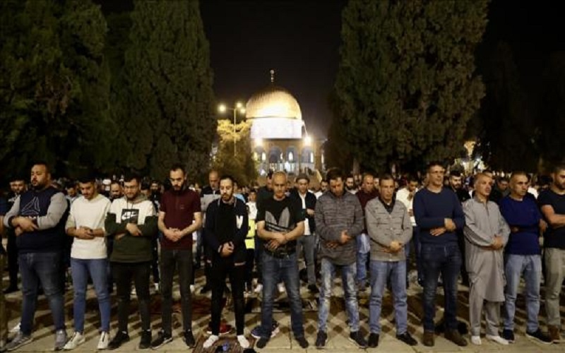 نيسان ـ أدى آلاف الفلسطينيين صلاتي العشاء والتراويح في رحاب المسجد الأقصى المبارك، مساء السبت، رغم قيود الاحتلال الإسرائيلي.