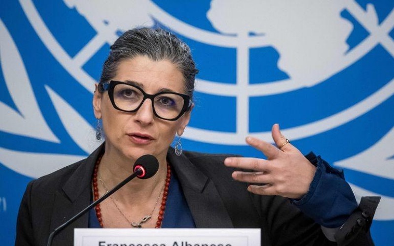 نيسان ـ قالت مقررة الأمم المتحدة الخاصة المعنية بحقوق الإنسان في الأراضي الفلسطينية فرانشيسكا ألبانيز إن الولايات المتحدة جزء لا يتجزأ مما يحدث في قطاع غزة.