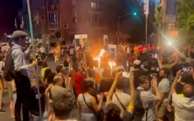 وأظهر مقطع فيديو مشاهد من احتجاجات عائلات الأسرى الإسرائيليين أمام منزل رئيس الوزراء بنيامين نتنياهو في شارع غزة بالقدس، حاملين لافتات وسط هتافات وغضب كبير على الحكومة.