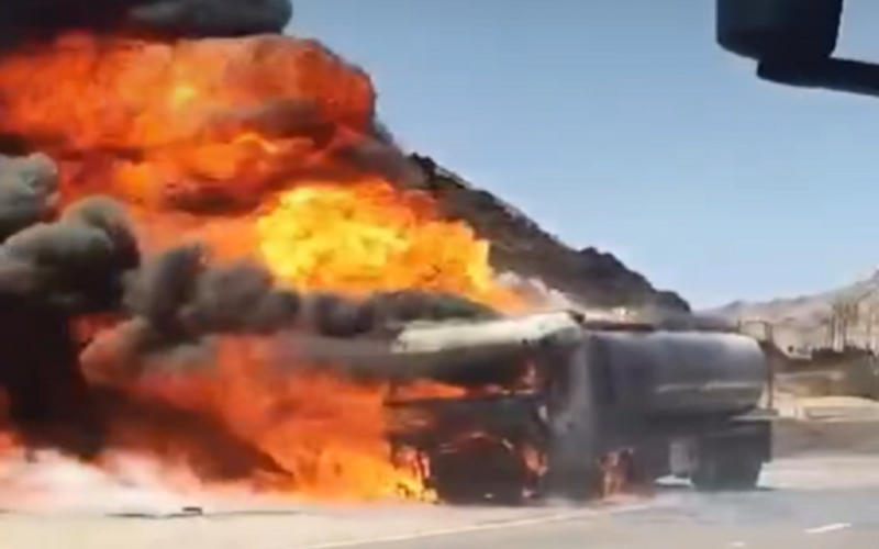 نيسان ـ شبت النيران بصهريج في الطريق الخلفي لمدينة العقبة اليوم الاربعاء، ما ادى غلى اشتعاله.