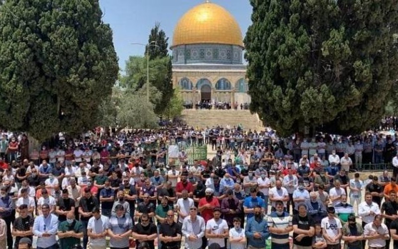 نيسان ـ أدى آلاف المواطنين الفلسطينيين صلاة الجمعة في رحاب المسجد الأقصى المبارك - الحرم القدسي الشريف داخل مدينة القدس المحتلة، في ظل الإجراءات العسكرية المشددة التي تفرضها سلطات الاحتلال الإسرائيلي على الوصول إلى المسجد.