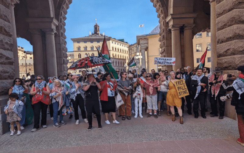 مظاهرة أمام البرلمان السويدي احتجاجا على دعم إسرائيل