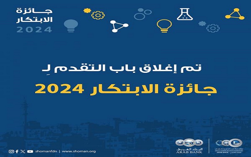 نيسان ـ أعلنت مؤسسة عبد الحميد شومان، ذراع البنك العربي للمسؤولية الثقافية والاجتماعية، عن اغلاق باب التقدم لجائزة عبد الحميد شومان للابتكار بنسختها الثالثة للعام 2024.