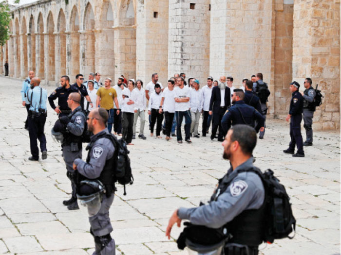 وقالت دائرة الأوقاف الإسلامية بالقدس في بيان، إن المستوطنين المتطرفين اقتحموا الأقصى ضمن مجموعات متتالية، من جهة باب المغاربة بحراسة مشددة من شرطة الاحتلال الإسرائيلي الخاصة المدججة بالسلاح، ونفذوا جولات مشبوهة وأدوا طقوسا تلمودية استفزازية في باحاته.