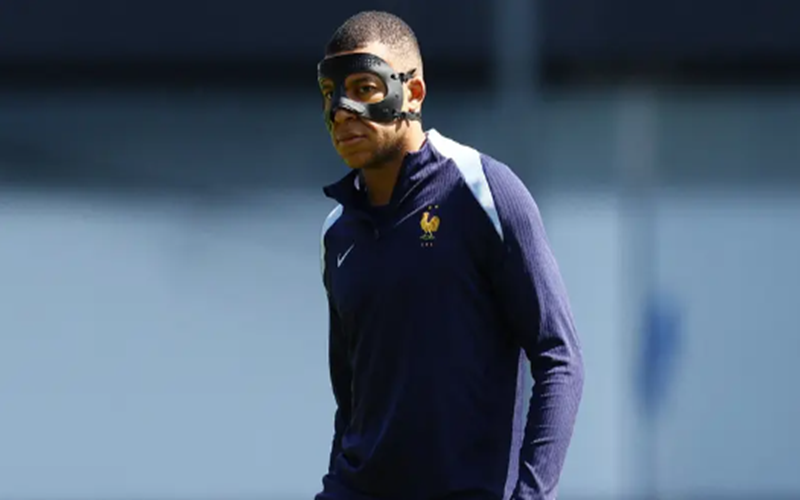 ويحتاج مبابي لقناع طبي بعد إصابته بكسر في الأنف الأسبوع الماضي خلال الفوز على النمسا بنتيجة 1-صفر غي أول لقاءات المنتخب الفرنسي في البطولة.