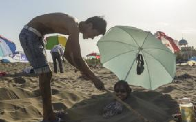 نيسان ـ يدفن السياح في توربان بمنطقة شينغيانغ الصينية أجسامهم في الرمال الساخنة خلال فصل الصيف.