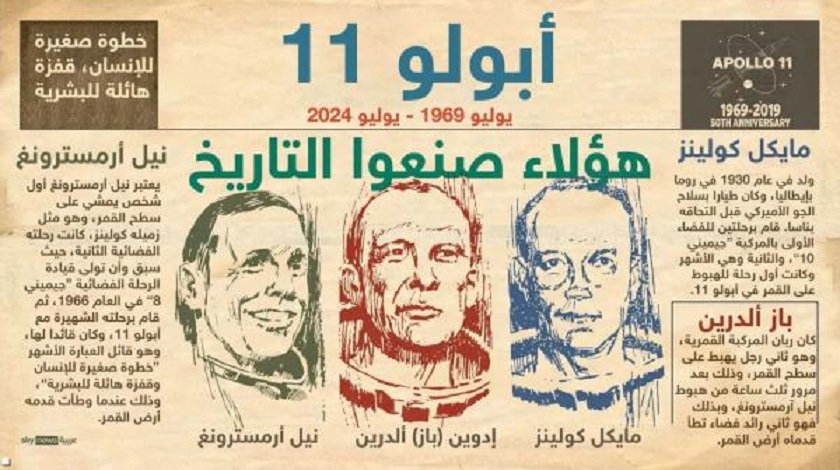 نيسان ـ يصادف اليوم السبت الذكرى السنوية الخامسة والخمسين لهبوط مركبة أبولو 11 على سطح القمر بقيادة رائدي الفضاء نيل أرمسترونغ وباز ألدرين.