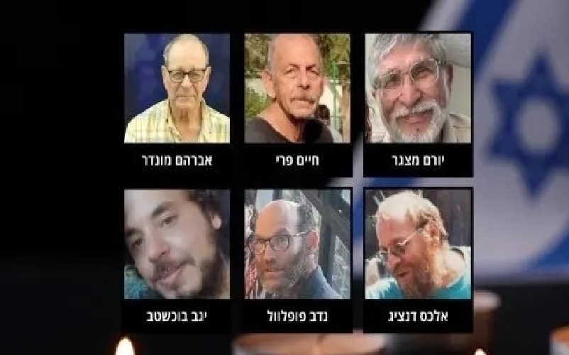 نيسان ـ في إسرائيل، يتزايد الاعتقاد بأن خمسة من الاسرى المحررين الستة الذين تم إستعادة جثثهم إلى إسرائيل أمس قتلوا في الاسر أثناء قصف الجيش الإسرائيلي خلال المناورة البرية في خان يونس قبل حوالي ستة أشهر.