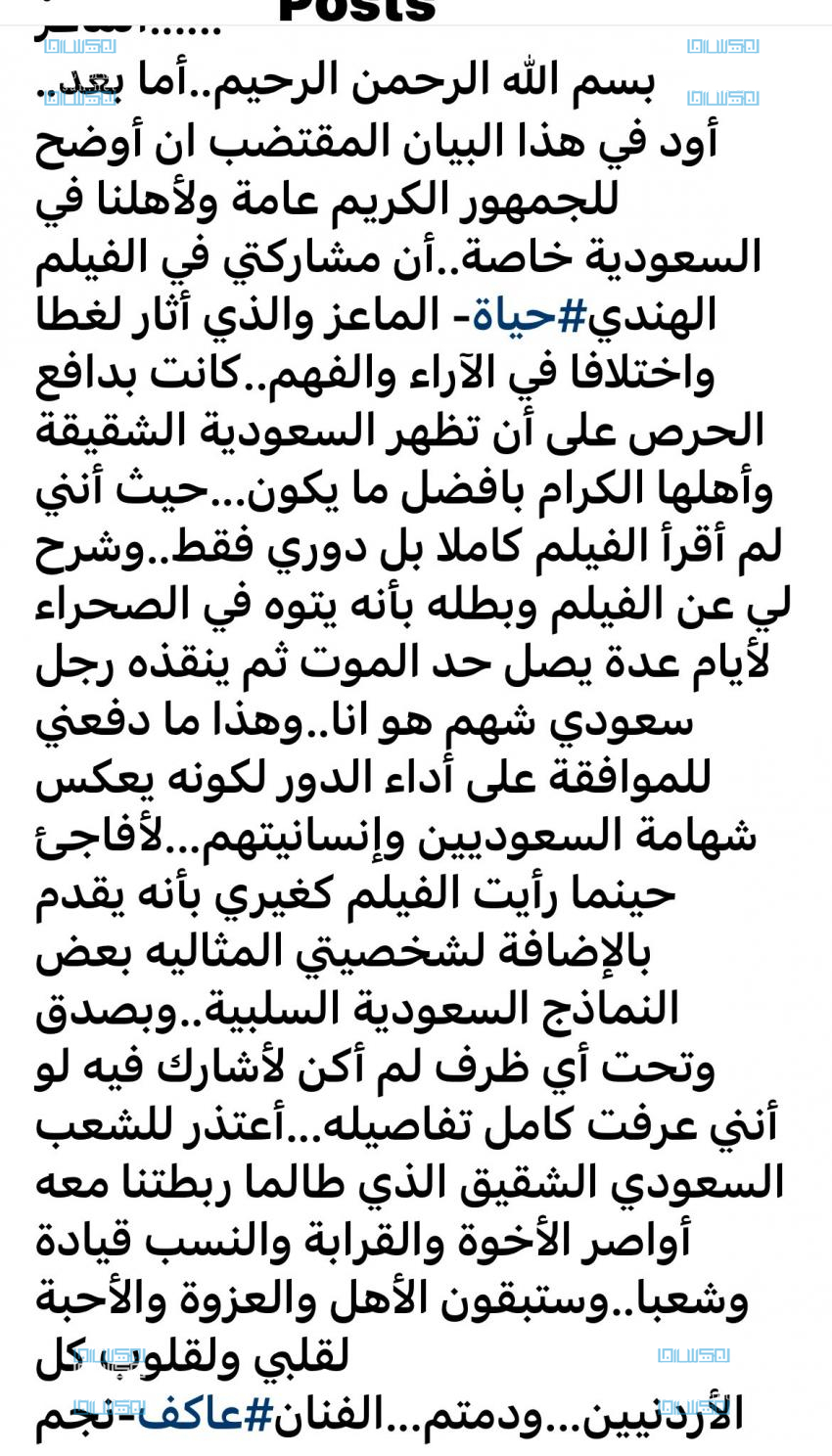وتابع نجم، بصدق وتحت أي ظرف لم أكن لأشارك فيه لو أنني عرفت كامل تفاصيله، مقدمًا إعتذاره للشعب السعودي الذي طالما ربطتنا معه أواصل الأخوة والقرابة والنسب وقيادة وشعبًا، حيث سيبقون الأهل والعزوة والاحبة لقلب النجم الأردني.