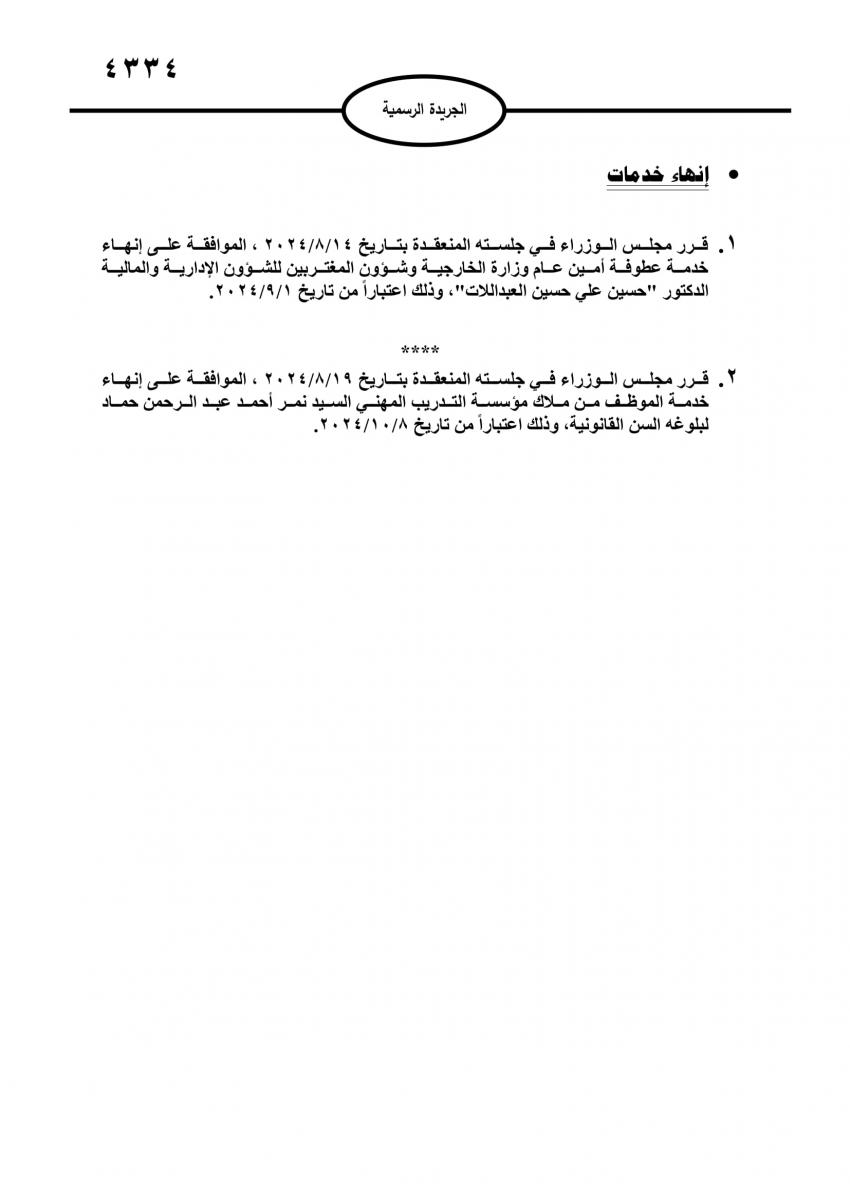 كما صدرت قرارات مجلس الوزراء باحالة عدد من موظفي الدولة إلى التقاعد، وانهاء خدمات آخرين.