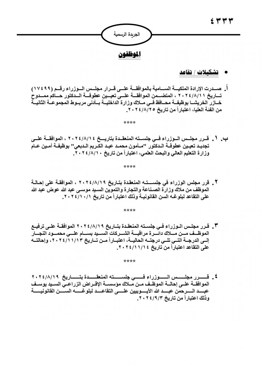 الخريشا محافظا .. وموظفون حكوميون إلى التقاعد (اسماء)