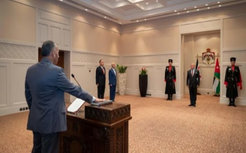 وحضر مراسم أداء اليمين رئيس الديوان الملكي الهاشمي يوسف حسن العيسوي، ووزير الداخلية مازن الفراية.