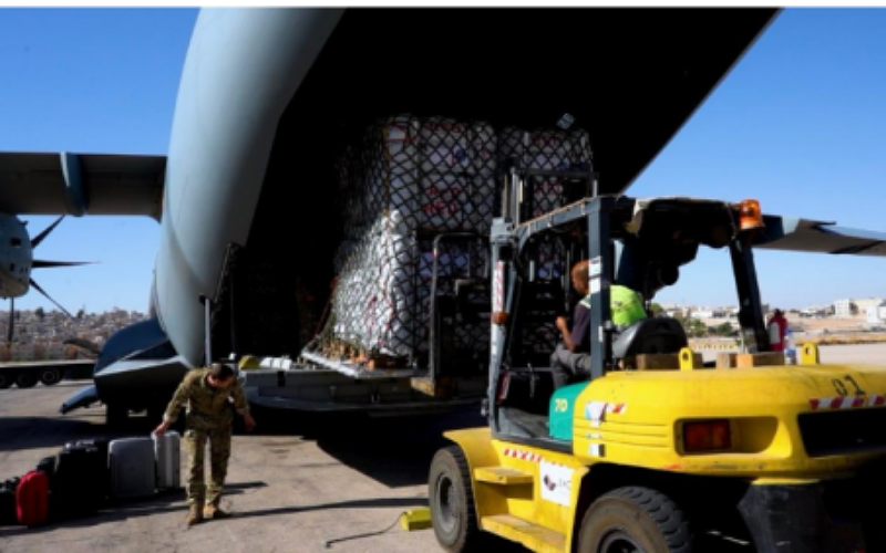 استقبال طائرة مساعدات مخصصة لغزة قادمة من بلجيكا في الأردن