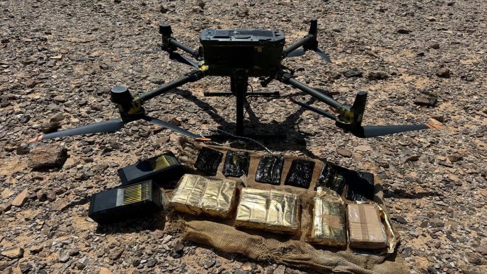 كما أحبطت المنطقة على واجهتها الغربية محاولة تهريب كمية من المواد المخدرة محملة بواسطة طائرة مسيرة (درون)، وتم تطبيق قواعد الاشتباك بعد التحري والمتابعة وإسقاطها داخل الأراضي الأردنية وتبين أنها تحمل مواد مخدرة، وجرى تحويل المضبوطات إلى الجهات المختصة.