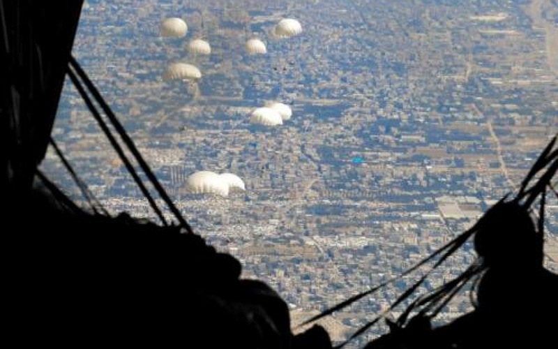 الجيش ينفذ إنزالًا جويًا لمساعدات غذائية في جنوب غزة