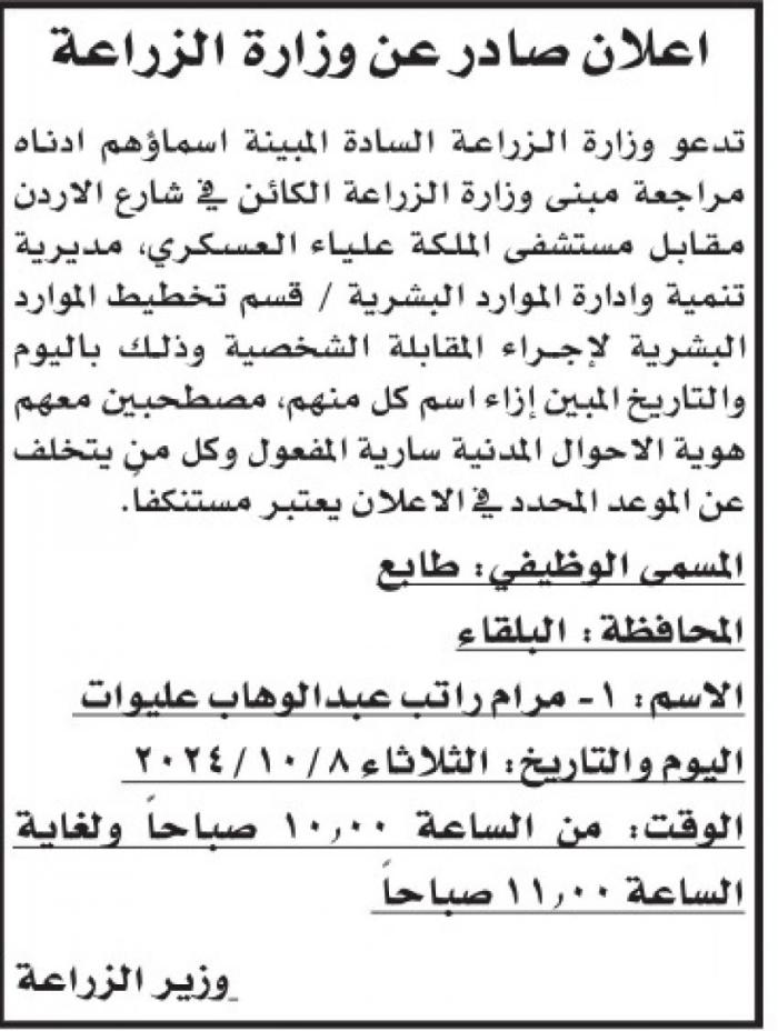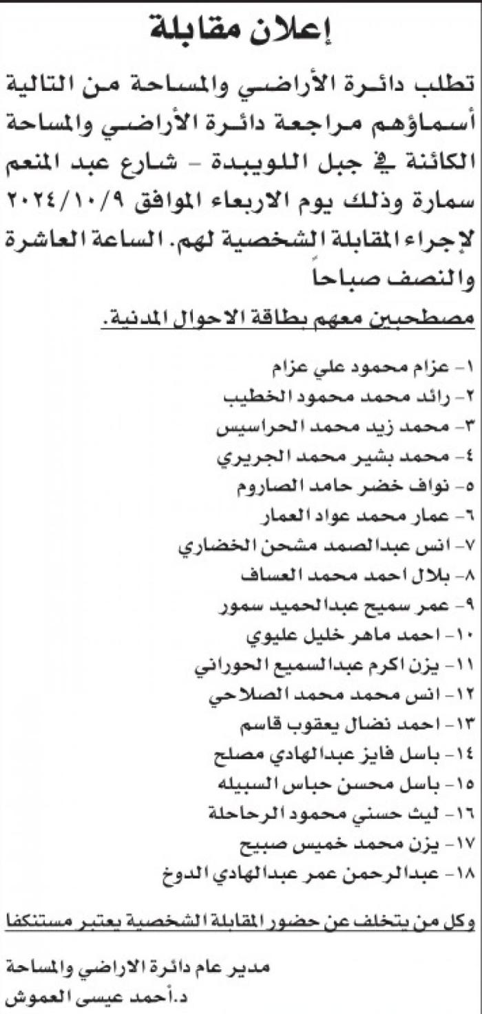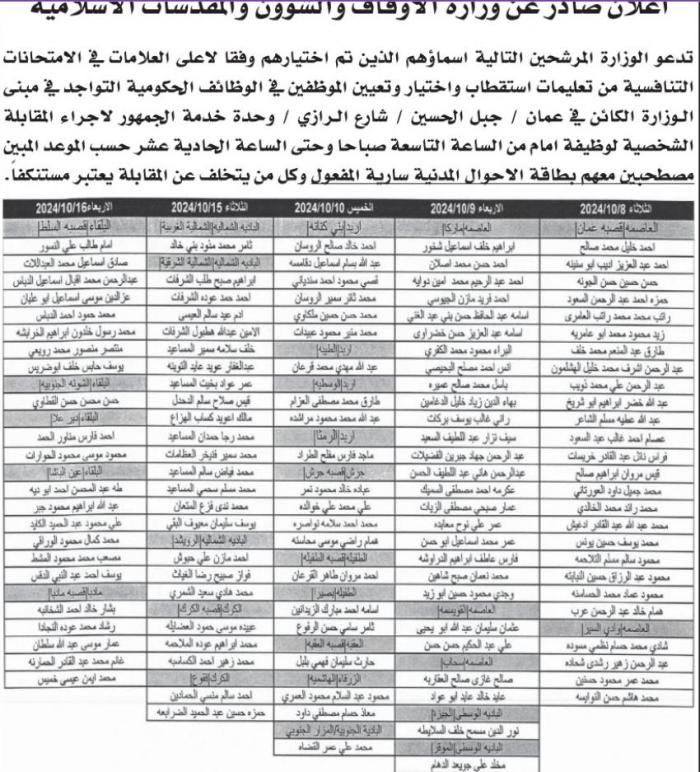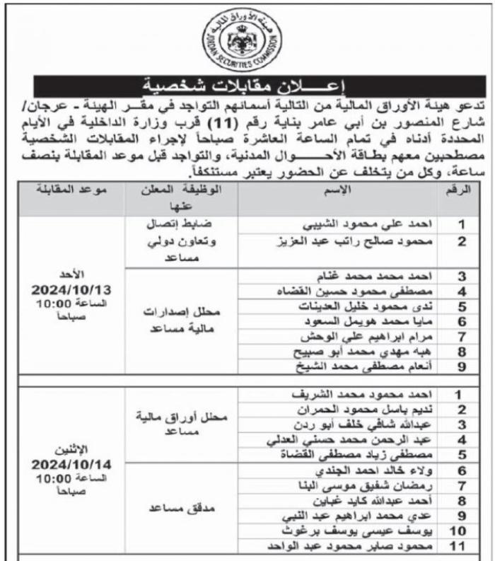 وكما دعت مؤسسات مرشحين للمقابلة الشخصية لاستكمال اجراءات التعيين.