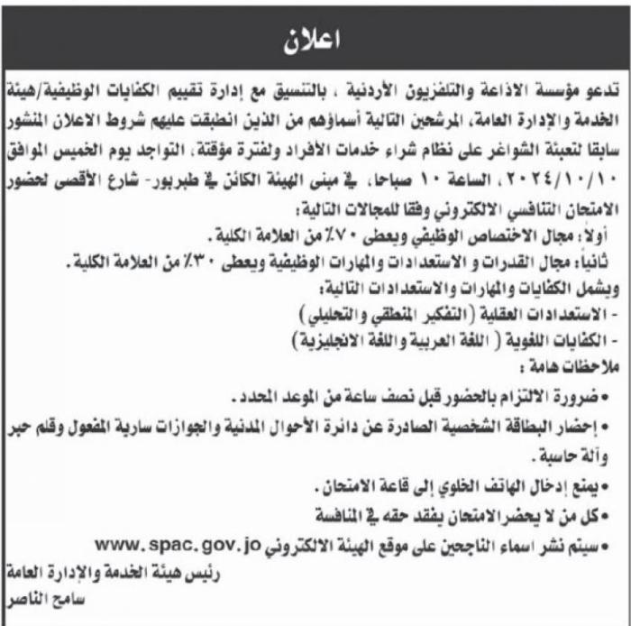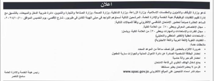 نيسان ـ أعلنت عدد من الوزارات والمؤسسات الحكومية، اليوم الاحد، عن حاجتها لملء شواغر وظيفية لديها.