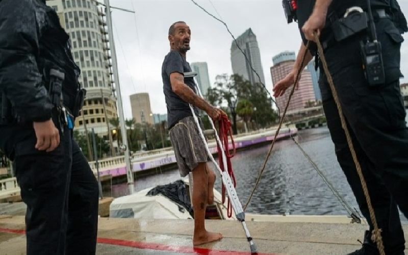 رجل بساق واحدة يعيش على مركب يتحدى إعصار ميلتون