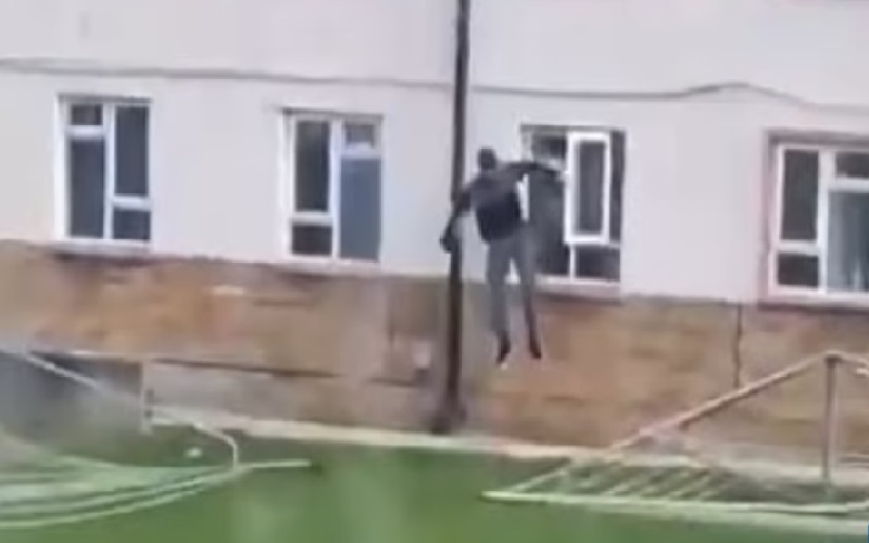 نيسان ـ أظهرت لقطات لحظة هروب لصين من مداهمة للشرطة بالتسلل من نافذة المرحاض، تحت أنوف رجال الشرطة الغافلين الذين حاولوا تحطيم باب المنزل.