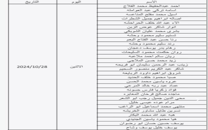 نيسان ـ دعت وزارة التربية والتعليم التالية اسماؤهم لغايات اجراء المقابلة الشخصية لاستكمال اجراءات التعيين .