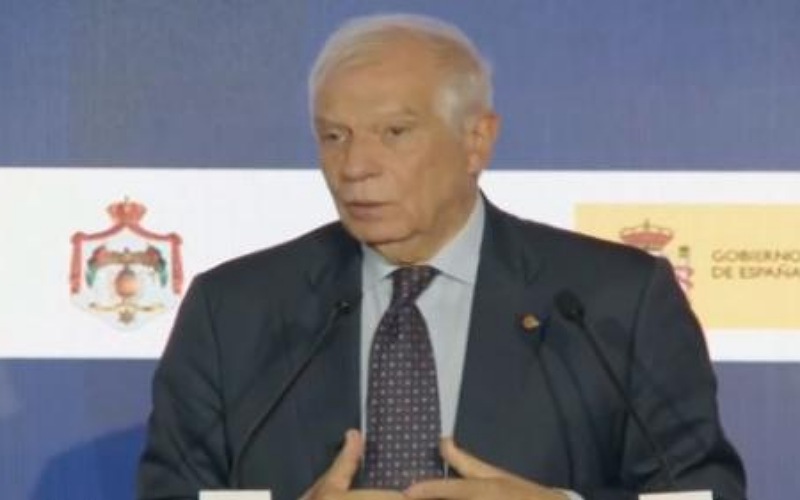 وقال بوريل، في مؤتمر صحفي مشترك مع وزير الخارجية وشؤون المغتربين أيمن الصفدي، ووزير الخارجية الإسباني خوسيه مانويل ألباريس، والأمين العام للاتحاد من أجل المتوسط ناصر كامل، في برشلونة، "طلبنا أن يتم تطبيق بعض العقوبات على إسرائيل لا سيما المستوطنين الذين يؤذون الفلسطينيين المدنيين الآمنين".