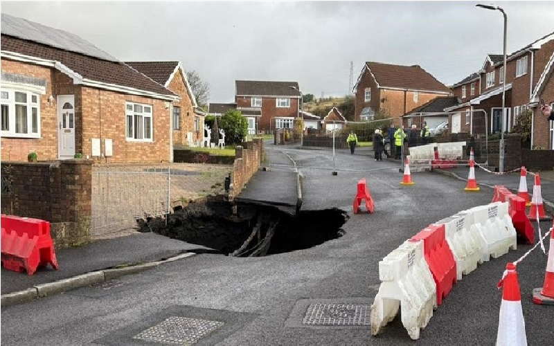 نيسان ـ أصيب سكان حي سكني في بريطانيا بحالة ذعر شديدة، حين فوجئوا بوقوع انهيار أرضي في الشارع أمام منازلهم بمقاطعة ميرثير تيدفيل، أمس الأحد، ما أثار مخاوف من إمكانية تمدده وتهديده للمباني القريبة.