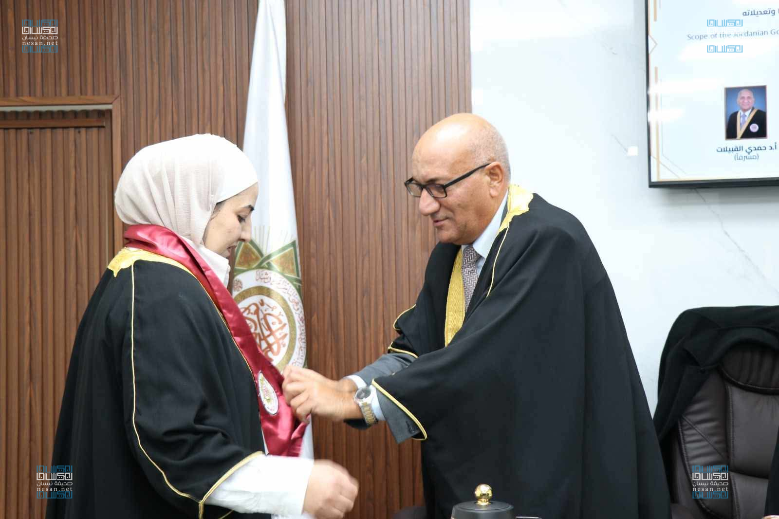 نيسان ـ تتقدم الوالدة الكريمة والاخوة والاخوات من ابنتهم الدكتورة كريمه عبدالغني عبدالعزيز البريزات رئيس قسم متابعة المديونية والتحصيل بالمؤسسة العامة للضمان الاجتماعي /فرع مادبا بالتهنئه والمباركه لإجتيازها مرحلة من مراحل العلم بعد مناقشتها اطروحة الدكتوراة بالقانون العام جمعت بها مراحل من الكد والمشقة جامعة بين العمل والبحث عن العلم نحتت منها شخصاً آخر لا تفزعه الخسارة ولا تضيق بسعة قلبه الحياة .. ف مباركاً الف مبارك خطواتكِ والتي رفع الله قدرها وباركها بقوله..يَرْفَعِ اللَّهُ الَّذِينَ آمَنُوا مِنكُمْ وَالَّذِينَ أُوتُوا الْعِلْمَ دَرَجَاتٍ }