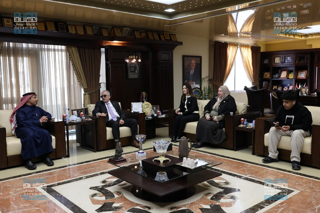 نيسان ـ استقبل رئيس جامعة عمان الأهلية، الأستاذ الدكتور ساري حمدان، في مكتبه أمس ، الأستاذ الدكتور محمد بن خزيم الشمري، القائم بأعمال الملحقية الثقافية السعودية في الأردن والمشرف على أعمال الملحقية الثقافية في لبنان، في زيارة رسمية تهدف إلى تعزيز التعاون الأكاديمي والثقافي بين الجانبين.